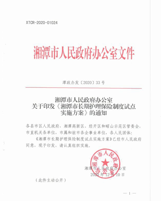潭政辦發(fā)〔2020〕33號湘潭市人民政府辦公室關于印發(fā)《湘潭市長期護理保險制度試點實施方案》的通知