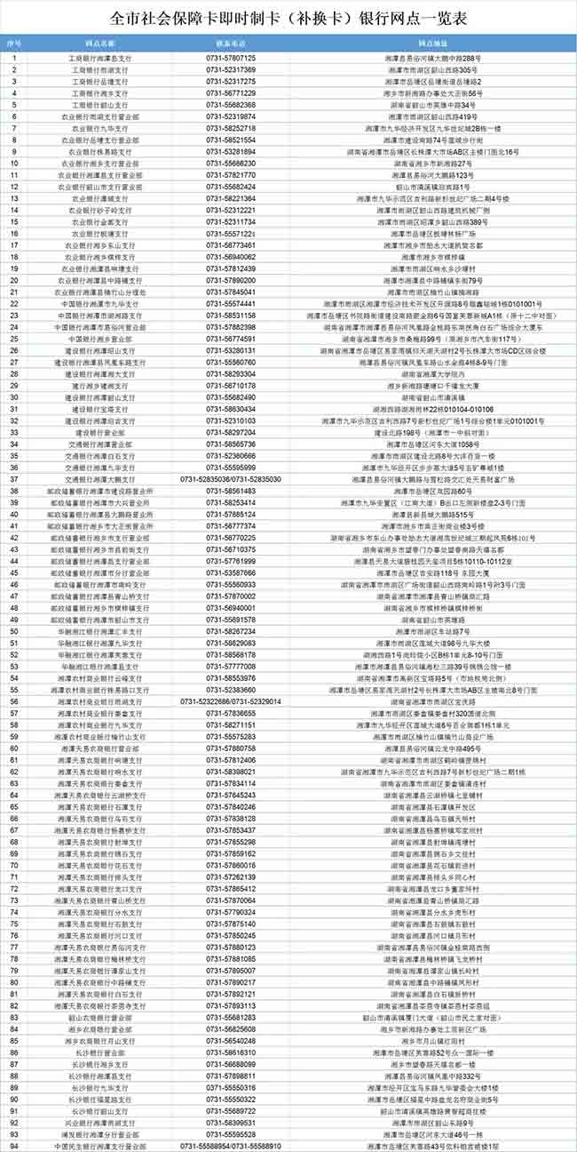 附:全市社會(huì)保障卡即時(shí)制卡(補(bǔ)換卡)銀行網(wǎng)點(diǎn)一覽表